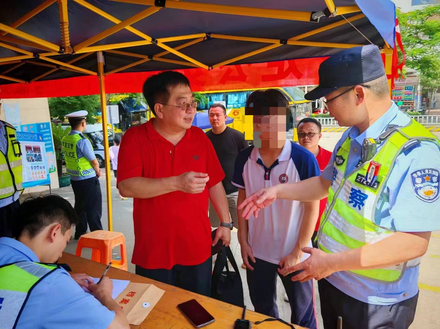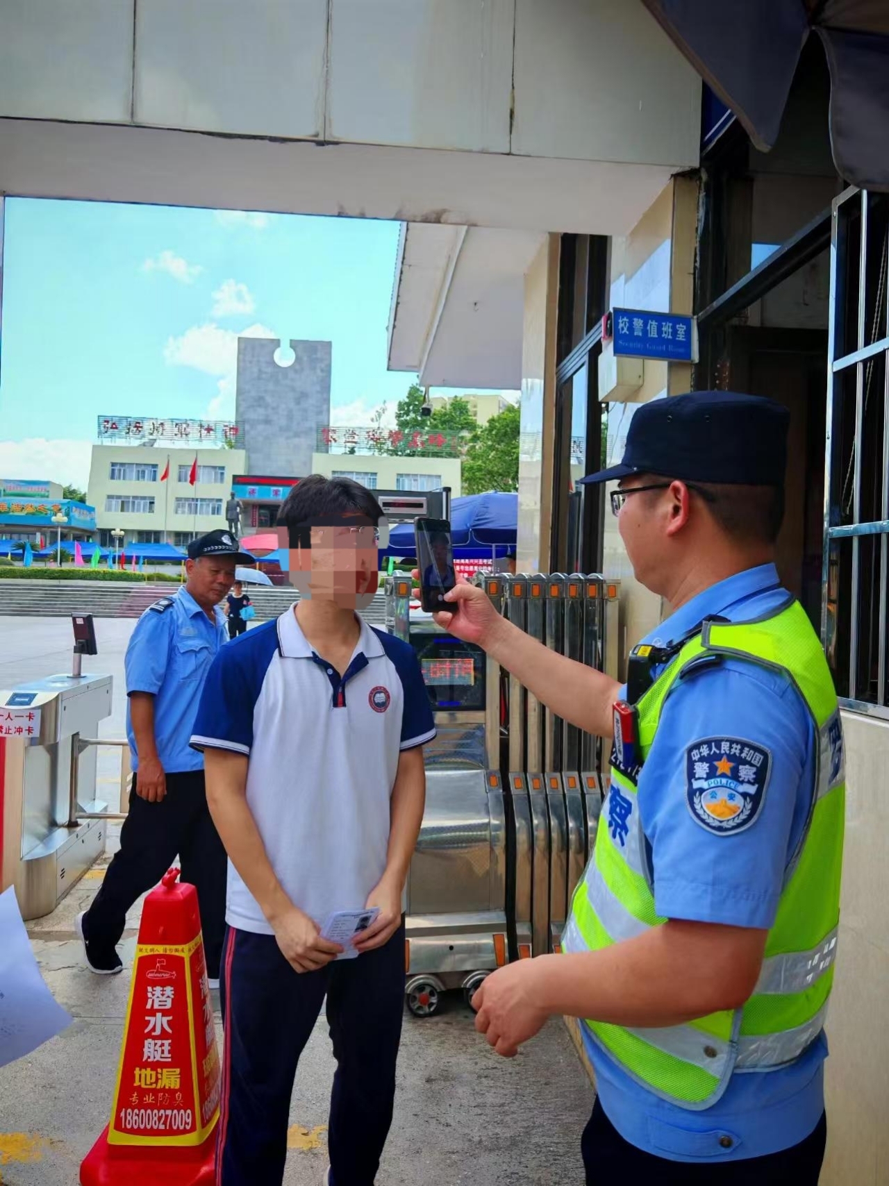 6月7日上午,2025年高考第一科考试开始前,罗定市城东学校高考安保工作驻点民警快速帮助一名遗失身份证的考生通过身份核验,使其顺利参加考试。